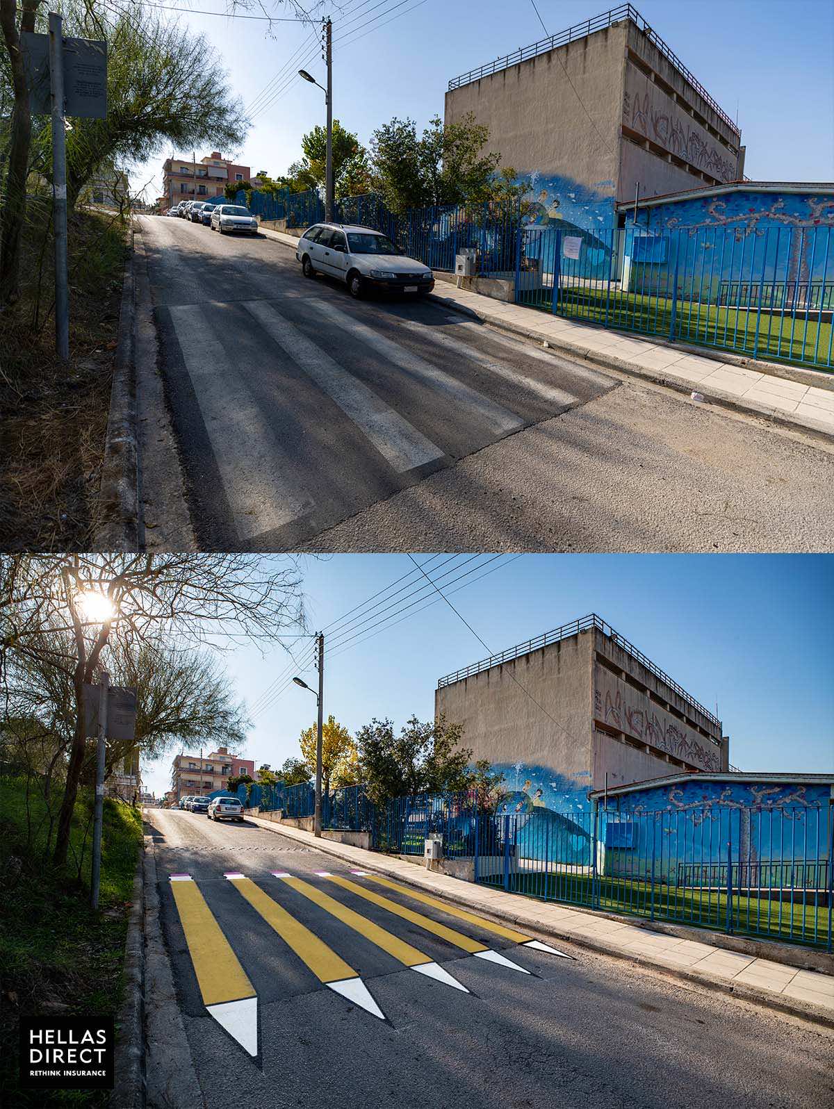 Μόλις πέσει το σκοτάδι, σχεδιάζουμε στην άσφαλτο, βάφουμε, τρυπάμε και καρφώνουμε. Κι όταν βγει ο ήλιος, ό,τι φτιάξαμε είναι έτοιμο να γίνει κομμάτι της καθημερινότητάς σου. Αυτή είναι άλλωστε η προτεραιότητά μας: η ασφάλεια όλων!
