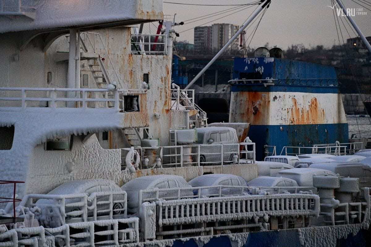 Δηλαδή αυτοκίνητα παγωμένα, κυριολεκτικά, πάνω στο πλοίο που τα μεταφέρει από τη Νότια Κορέα στη Ρωσία. Όπως αυτά που αντίκρισαν οι άνθρωποι στο λιμάνι του Βλαδιβοστόκ, όταν κατέπλευσε το πλοίο με την –τουλάχιστον ειρωνική- ονομασία «Sun Rio».