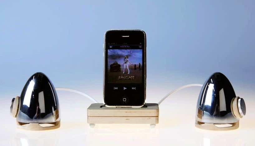 Έτσι το ονόμασε ο σχεδιαστής. Το κομμάτι αυτό είναι κατασκευασμένο από το περίβλημα των πίσω φώτων της Triumph Bonneville, με ξύλο. "Τι ακριβώς είναι;", θα μας αναρωτιέσαι. Είναι ένα σετ μικρών ηχείων υψηλής απόδοσης τα οποία είναι συνδεδεμένα με μία ψηφιακή βάση, εδώ τα βλέπουμε συνδεδεμένα με ένα smartphone.
